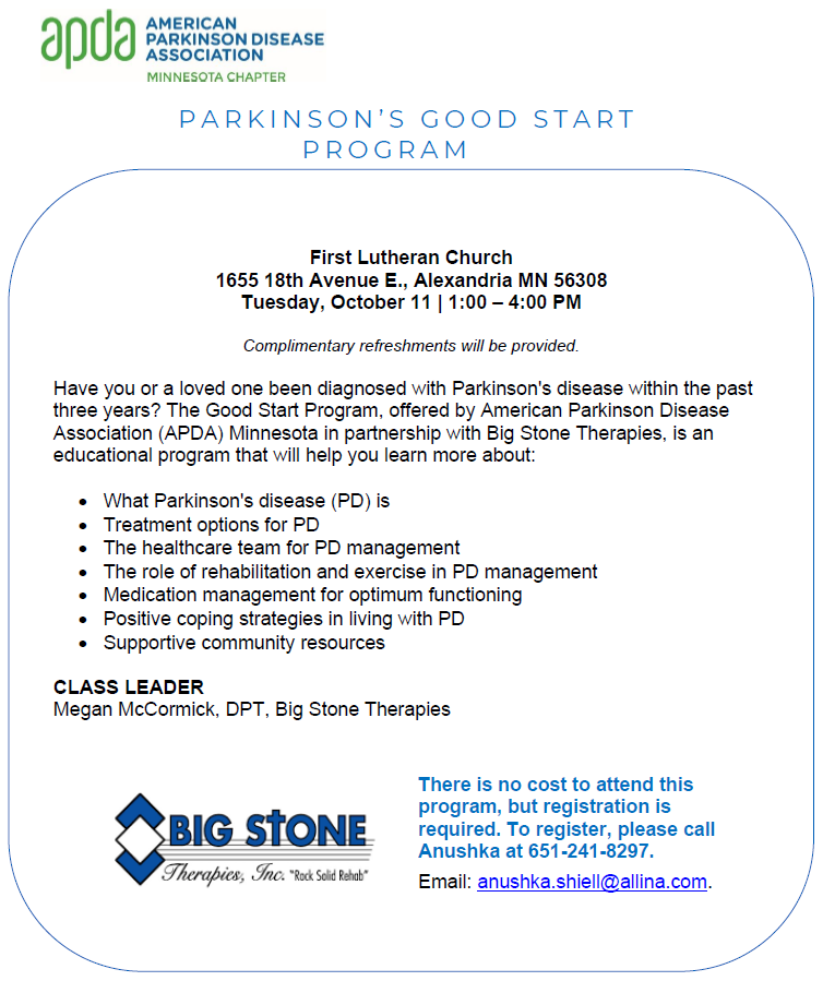 Parkinson S Good Start Program Alexandria American Parkinson Disease Association